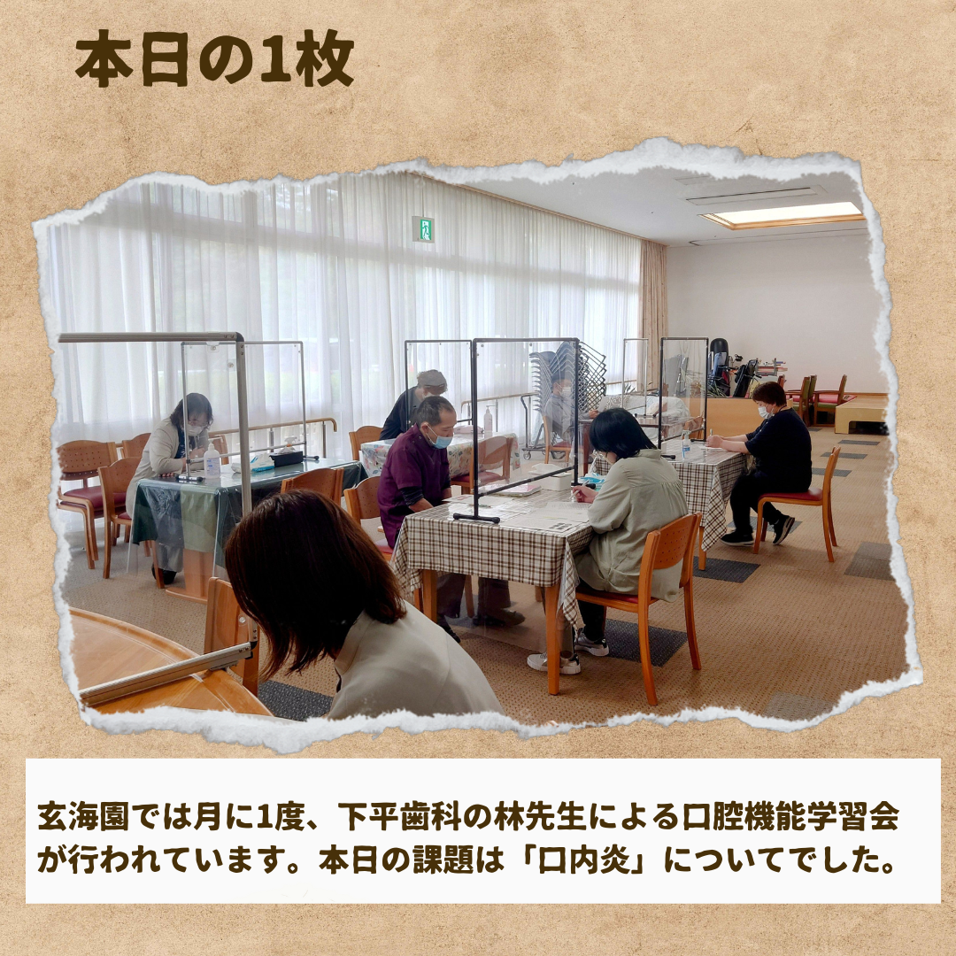 一言日記投稿 2024年04月30日 月末の火曜日は日頃往診でお世話になっている、下平歯科の林先生による口腔機能学習会の日! 勤務などで参加できなかった職員は後日回覧で情報共有を行っています。